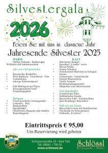 ab 18:00 Uhr SilvesterGala mit Live Musik und großem Silvester Menue (95,- € p.P.)